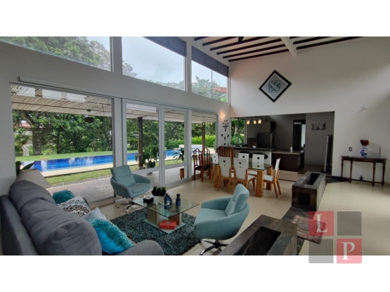 Vendo hermosa casa campestre en exclusivo condominio, en el kilómetro 6 vía el Edén, en Armenia, Quindío. desarrollada en 1 solo piso te ofrece gran confort , desarrollada en un lote de en 2963 m2 ,con zonas verdes, jardienes y árboles y una deliciosa piscina con jacuzzi, Con un área de 261.5 m2 distribuidos en 3 habitaciones, la alcoba principal con vestier y baño, 2 baños, cocina integral con isla, sala comedor con terraza, sala de televisión, estudio, despensa, patio de ropas, alcoba y baño de servicio, bodega, piscina con jacuzzi 8 chorros. Cuenta con amplia zona verde para disfrutar con familia y amigos, parqueadero cubierto para 2 vehículos y espacio de parqueo para 5 carros más, ubicación privilegiada, excelente acceso, entorno tranquilo y natural.